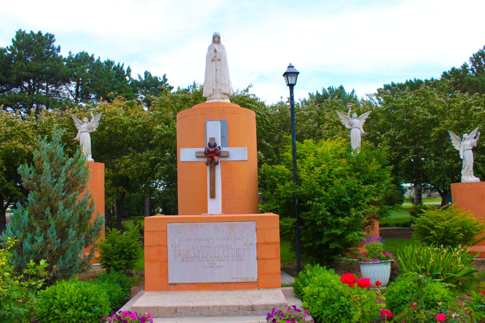 Located just a few feet West of Lady of Fatima is a sculpture created by the Knights of Columbus of Cambridge and Arapahoe and artist Sondra L. Jonson of Cambridge to show their commitment to the respect of life and preservation of the family.